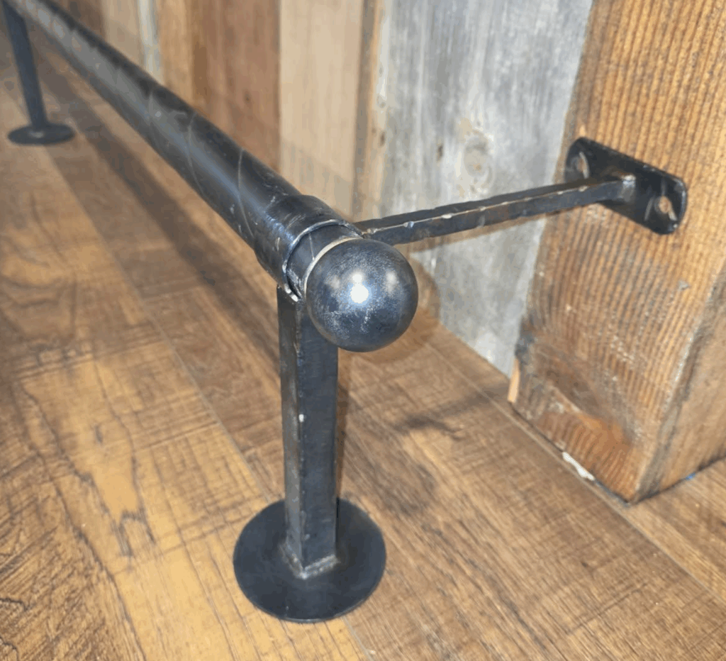 Stair Railing | Any blends of metal and wood, and more. Ask us about our finishes, indoor and outdoor capabilities, sizes, etc. We are happy to build to your needs.